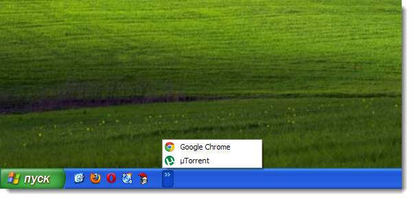 В области быстрого запуска расположены несколько иконок, которые отображают наиболее используемые пользователем программы. Отдельно имеется значок, изображающий кавычки, при его нажатии пользователю будут доступны весь список часто используемых программ. Следует отметить, что в эту область пользователь может сам добавить или убрать необходимую программу.