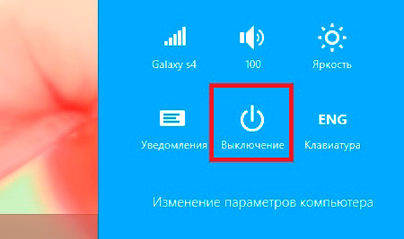 Данная команда предполагает несколько вариантов выключения ПК с системой Windows 8. В данном случае, можно зайти в спящий режим, завершить работу или перезагрузить компьютер.